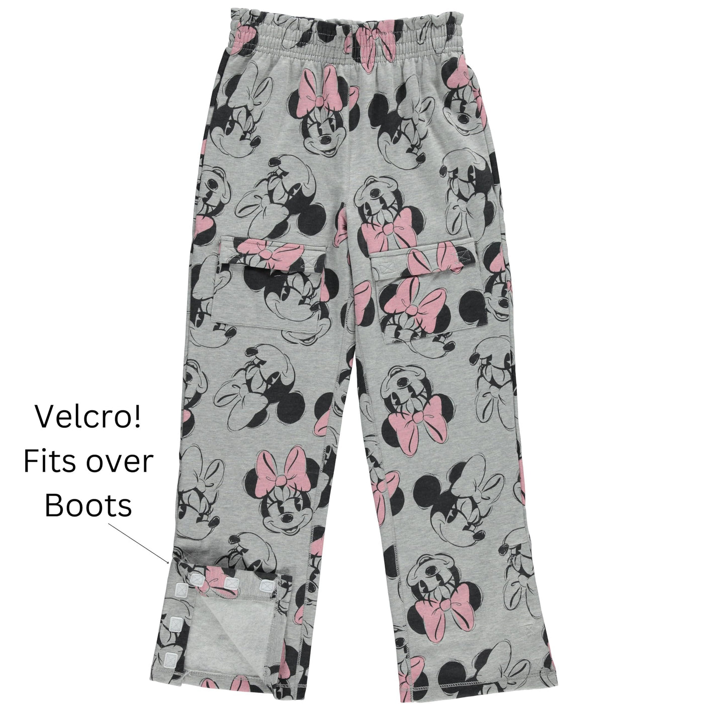 This Girls Disney Minnie Mouse Adaptive T-Shirt and Jogger Set, available in sizes XS-XL, is designed for comfort and Minnie-approved style. The T-shirt features a Velcro shoulder opening for easy dressing and includes a cute bow detail at the bottom, adding a playful Minnie touch. The joggers come with Velcro closures at the bottom of each leg, making them easy to slip on and off over shoes or braces, perfect for children with mobility needs. Two Velcro-secured front pockets offer safe storage for small treasures, making this set as functional as it is stylish. Combining accessible design with classic Minnie Mouse charm, this outfit is ideal for any young Disney fan!