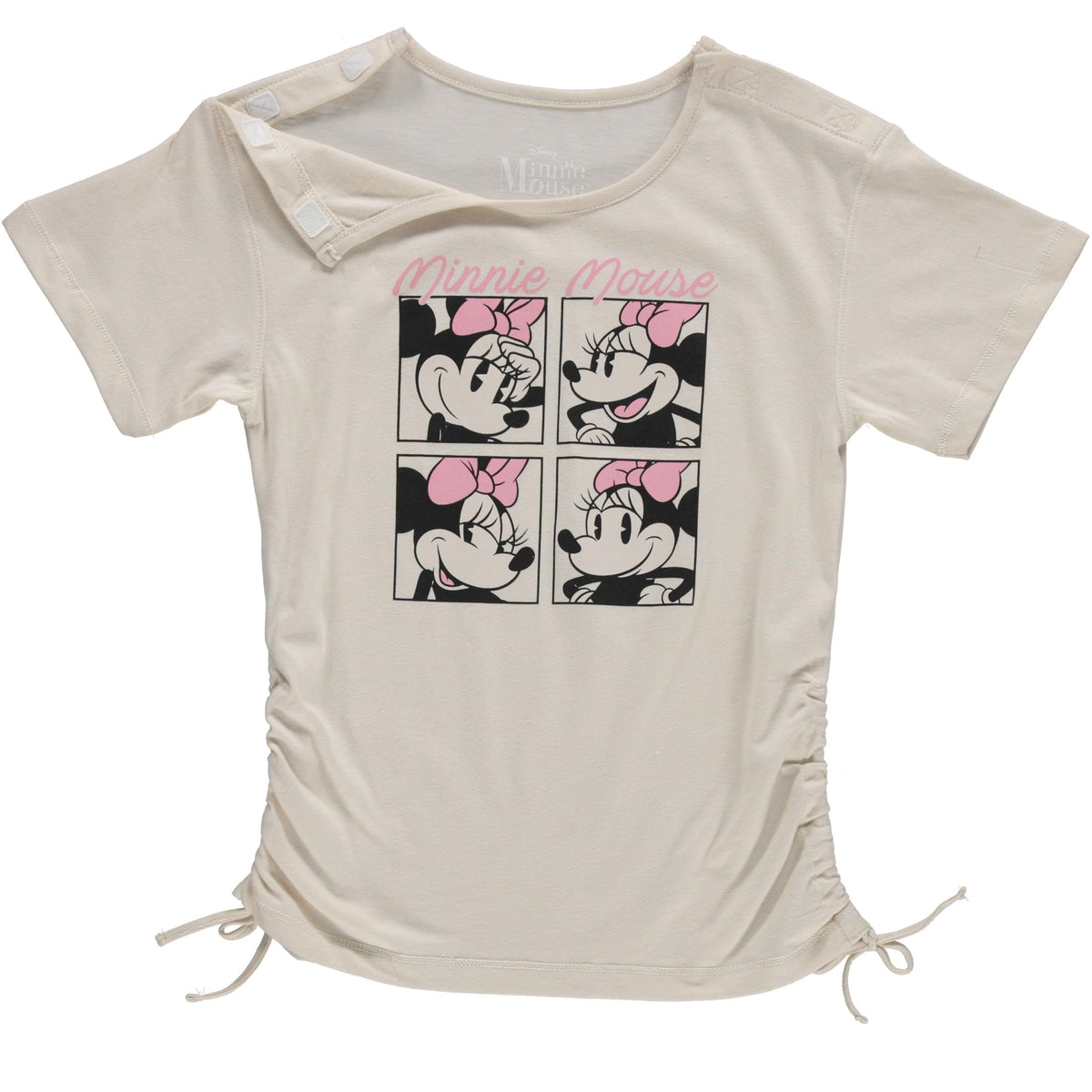 - Adaptive Velcro Shoulder Opening: The Minnie Mouse T-shirt includes a Velcro shoulder opening, allowing for easy dressing without needing to pull it over the head.