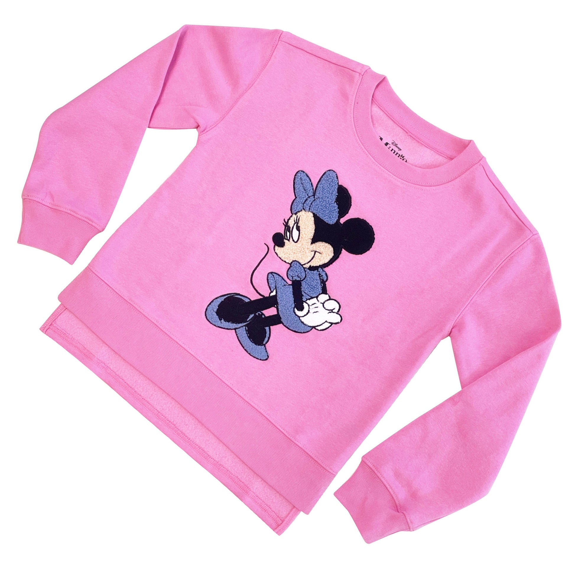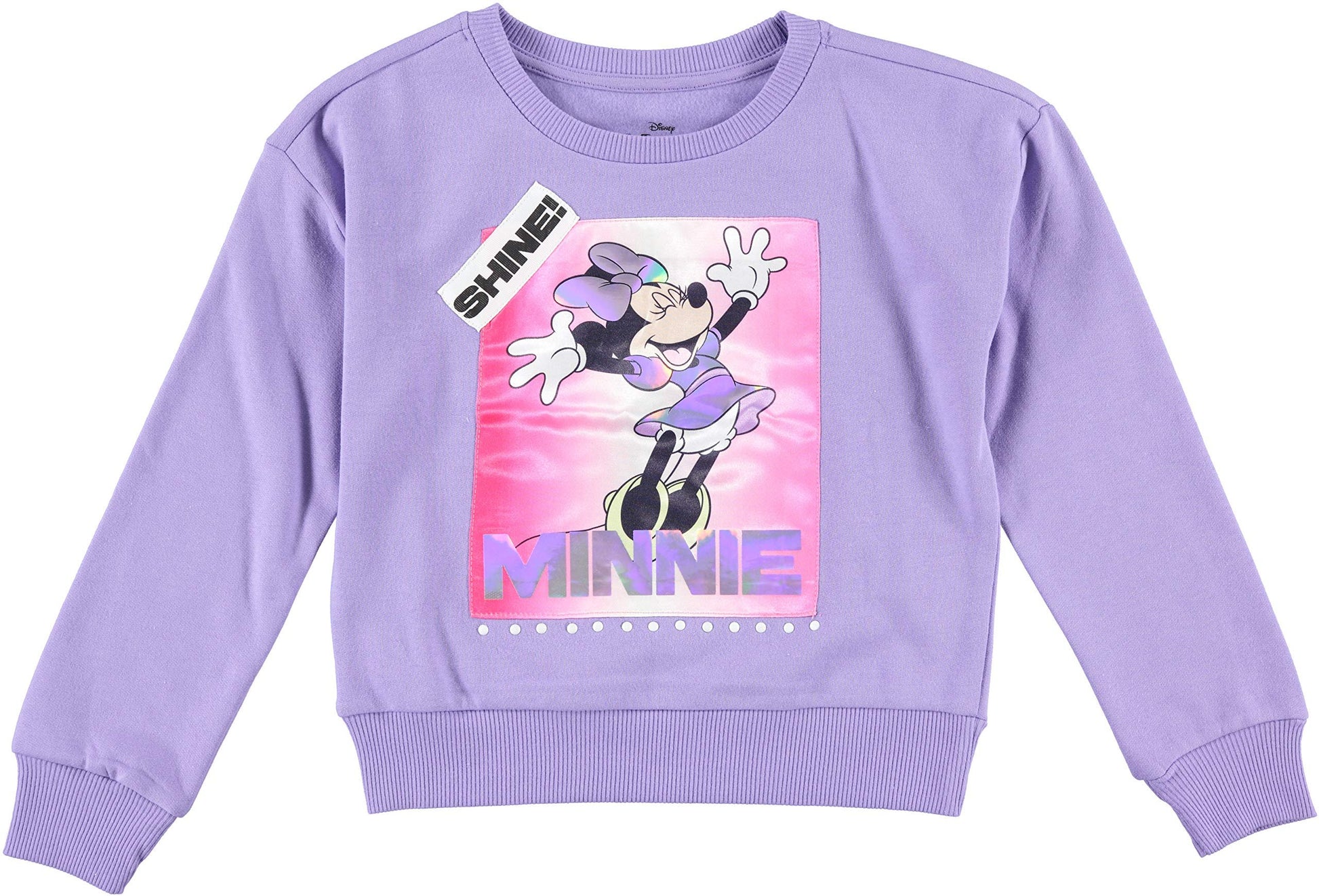 Minnie Mouse Girls Sweatshirt -Jumbo Print and Embroidery Minnie Mouse Sweater- Sizes 4-16