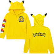 Level up your young Trainer’s wardrobe with this officially licensed Pokémon hoodie! Perfect for kids who dream of becoming Pokémon Masters, this bright yellow Pikachu sweatshirt combines playful design with everyday comfort. Featuring 3D Pikachu ears on the hood, a bold “Pikachu Team” chest print, and eye-catching Poké Ball graphics running down the sleeve, it’s a wearable adventure waiting to happen.From school days and playground fun to cosplay events and chilly evenings, this hoodie delivers warmth, style, and the spirit of Pokémon. The durable zip-up design, soft fabric blend, and practical pockets make it ideal for real-life training, exploring, and catching ‘em all—while keeping your little one comfy and confident.Pokémon Style Kids Love: Vibrant Pikachu yellow Costume hoodie with 3D ears, “Pikachu Team” chest graphic, and bold Poké Ball designs on the sleeve for instant Trainer vibes at school, parties, or playtime.Soft, Warm & Durable: Cozy fleece-lined zip-up sweatshirt keeps kids snug on cool days; perfect for layering under jackets or wearing solo during indoor adventures.Officially Licensed Quality: Authentic Pokémon apparel built to last, with high-quality prints that won’t crack or peel—ideal for everyday wear or cosplay.Practical Pockets for Trainers: Two roomy front pockets hold Pokémon cards, snacks, or small treasures while your child explores their world.Easy-Care Fabric Blend: Made from a shrink- and fade-resistant cotton/polyester blend that’s machine washable—maintains color and fit after every wash