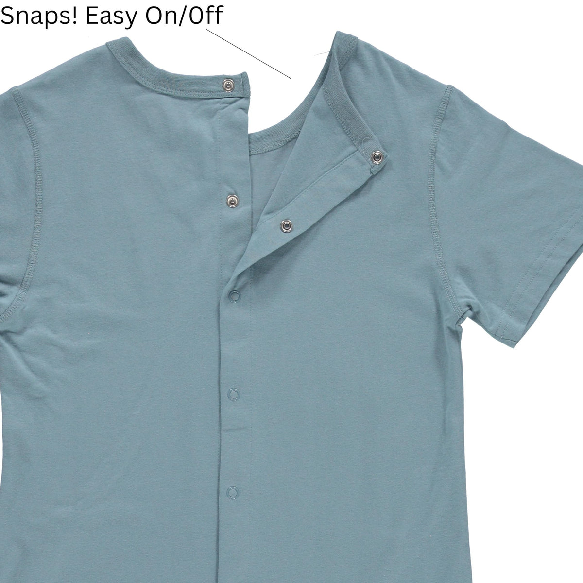 - Adaptive Metal Snap Back Closure: These Star Wars Mandalorian adaptive clothing sets feature an easy metal snap back closure on the T-shirt, making dressing simple without needing to pull over the head.